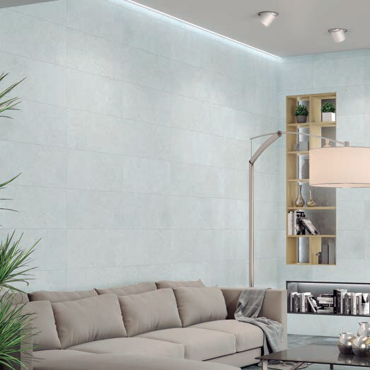 • Salón con azulejos porcelánicos vitacer advanceP.e. advance white 60x120 rect. s&g