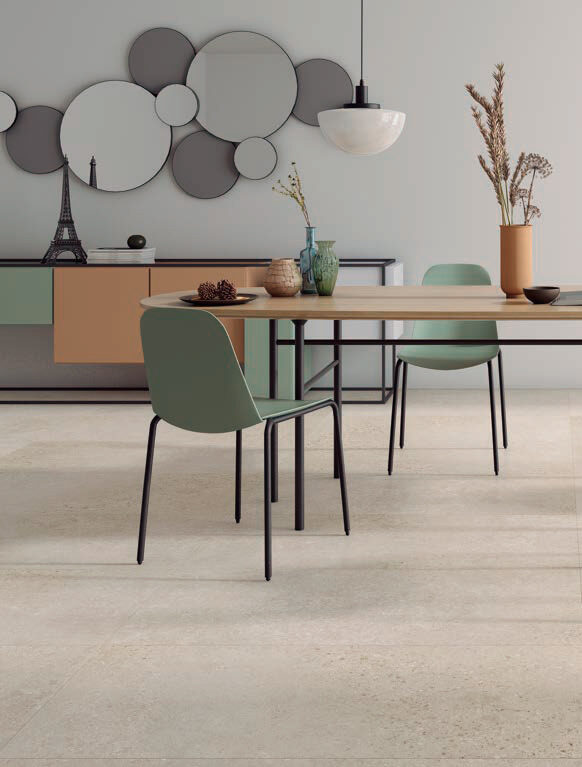 • Salón con suelo porcelánico imitación marmolP.e. artistic white 100x100 rect